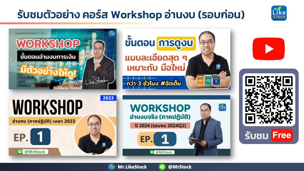 - Workshop อ่านงบการเงิน (ภาคปฏิบัติ) ปี 2024 (มูลค่า 2,990 บาท) ฟรี!!