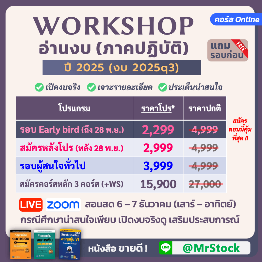 คอร์ส Online – Workshop อ่านงบการเงิน รอบ ปี 2025 (งบปี 2025Q3)