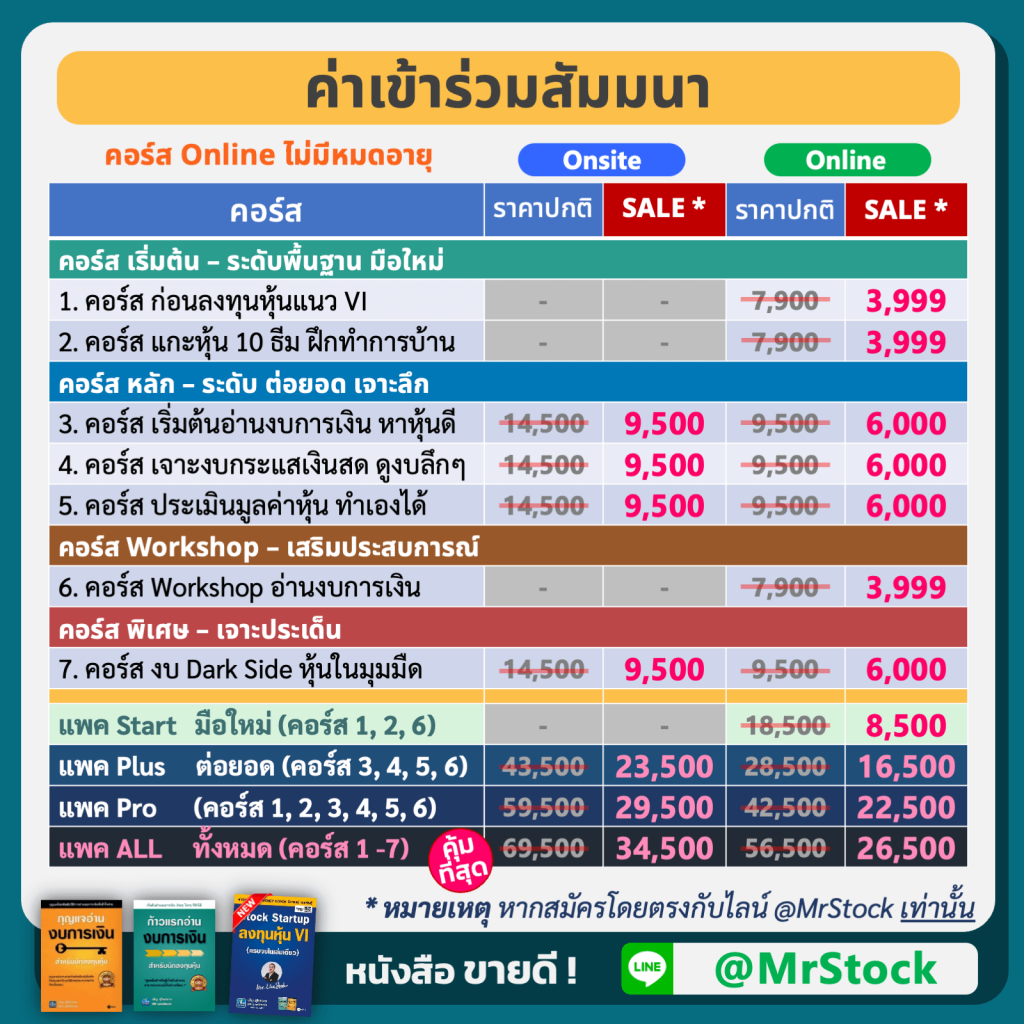 ทักไลน์ สอบถาม คอร์สที่เหมาะกับเราก่อนได้ที่ @MrStock (คลิกเพื่อทักไลน์)